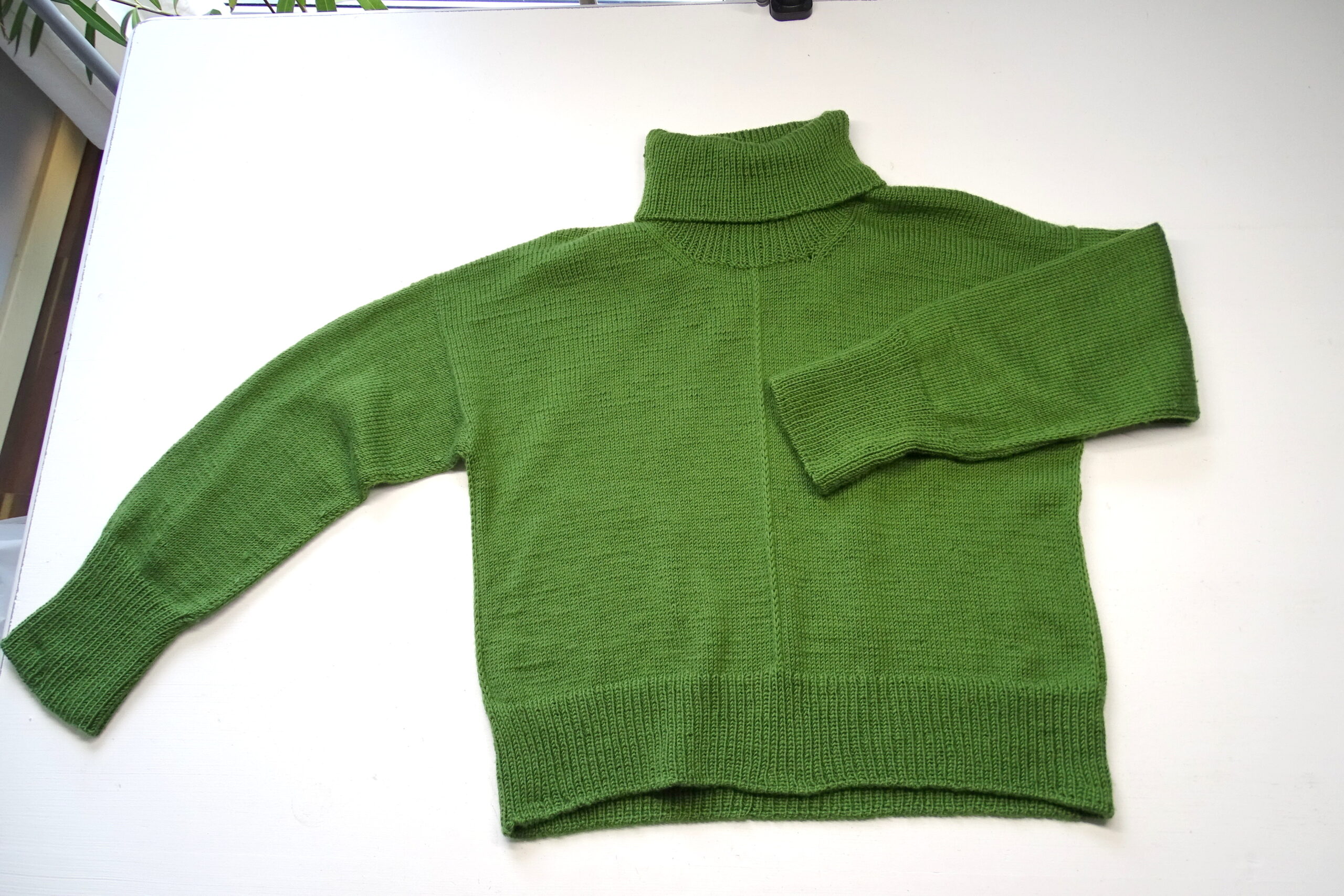 Allerdings unterlag ich hier einem Gedankenfehler. Auch wenn die Maschenprobe nah an dem war, was ich brauchte, war das Garn viel zu dünn. Ich hatte also für teuer Geld die falsche Wolle gekauft. So musste ich nochmal neu suchen und da ich nicht 2 Pullover in der Farbe rot haben wollte (und ich die bereits gekaufte Wolle ja für irgendein anderes Projekt verarbeiten werde), war ich auf der Suche nach einer anderen Farbe, die mir gefiel. Nach längerem Suchen bin ich dann auf das Olivgrün gestoßen und inzwischen auch ganz happy damit. Am Besten kommt die Farbe rüber in der Galerie ganz unten.
