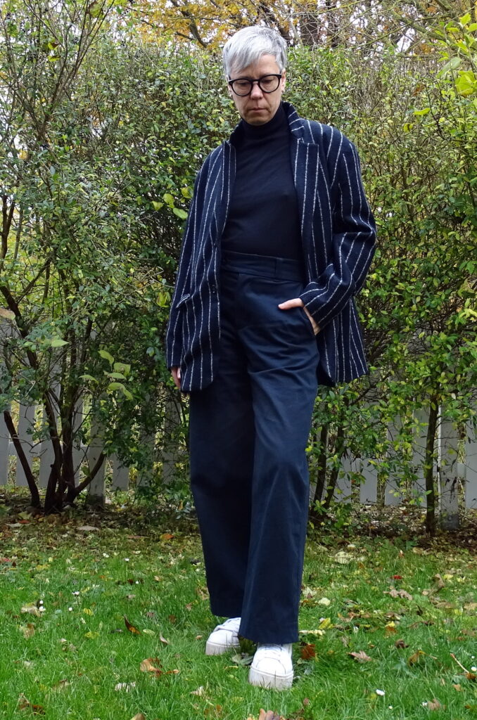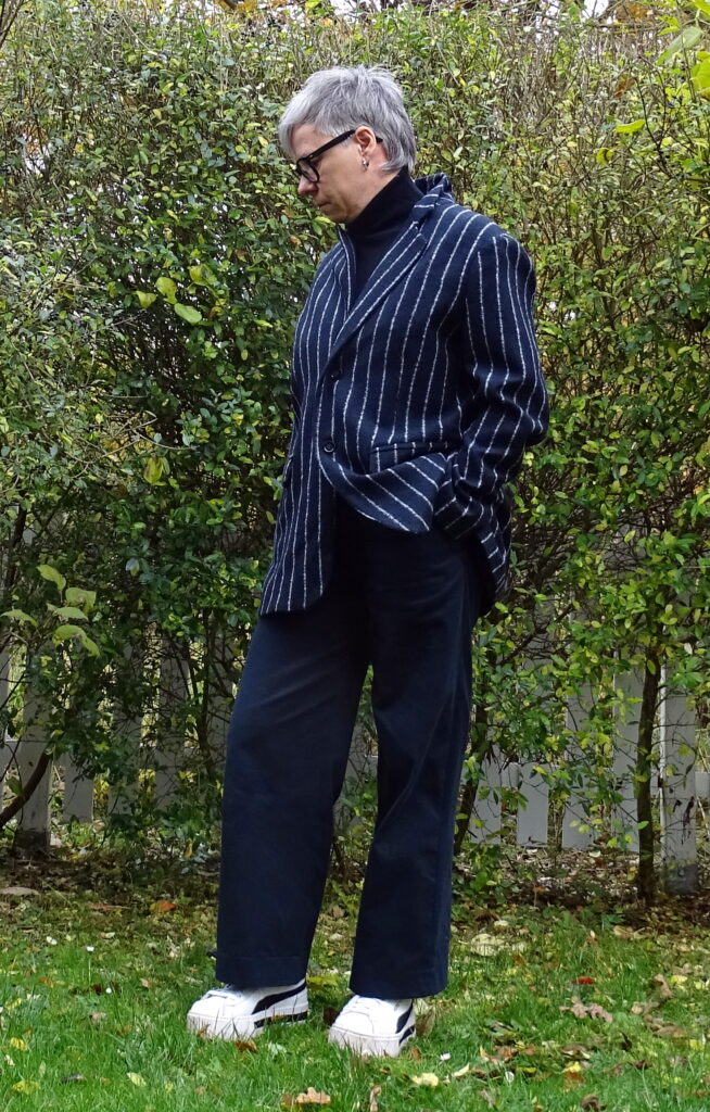 Nichts destotrotz bekommt der Blazer eine Chance und wird demnächst einen Ausflug mit ins Büro machen. Die passende Hose (Key Trouser) und einen Kauf-Rollkragen-Pullover habe ich als Kombination zumindest für gut befunden.