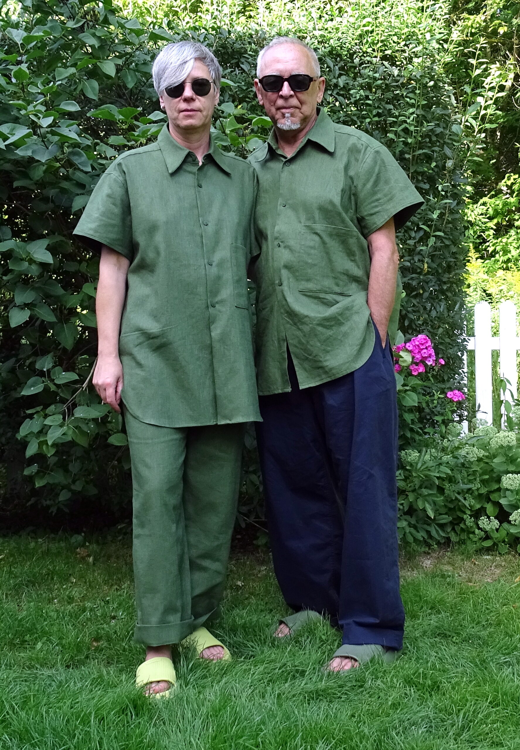 Und da der Geburtstag meines Lebensgefährten kurz vor der Tür stand, hatte ich die Idee, uns das Hemd im Partnerlook zu nähen. Ich hab auf bereits bewährte Schnitte von Ann Ringstrand zurückgegriffen. Das Hemd ist das Saint Shirt in der kurzärmeligen Variante – für den Mann in Größe L, für mich in Größe M, die Hose ist die Key Trouser.