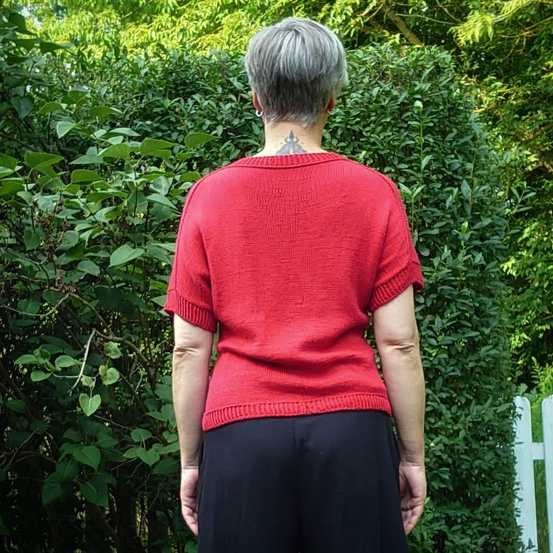 Ich hatte Lust, im Urlaub ein neues Strickprojekt zu starten und habe mir ein sommerliches Top ausgesucht. Ich wollte es schlicht, aber mit dem gewissen Extra haben, da die Farbe rot sofort für mich feststand. Ein rotes Oberteil fehlt mir nämlich noch in meiner Sommergarderobe.